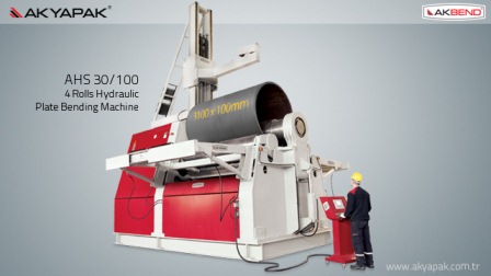 Akyapak Powered Rolls -Four Roll Plate Bending Machines- Model AHSSince 1962, Akyapak Machinery has been producing 3/4 Rolls hydraulic/mechanic Plate Bending Machines, hydraulic/mechanic Profile Bending Machines, Pipe/Tube Bending Machines with mandrel and hydraulic/mechanic Bordering Machines. Now Akyapak has a new builded factory with 10.000 sqm closed area in order to improve its well known quality. Akyapak invests in technology for future with 150 well experienced, specialist staff and produce about 2000 machines yearly. Akyapak Model AHS Hydraulic