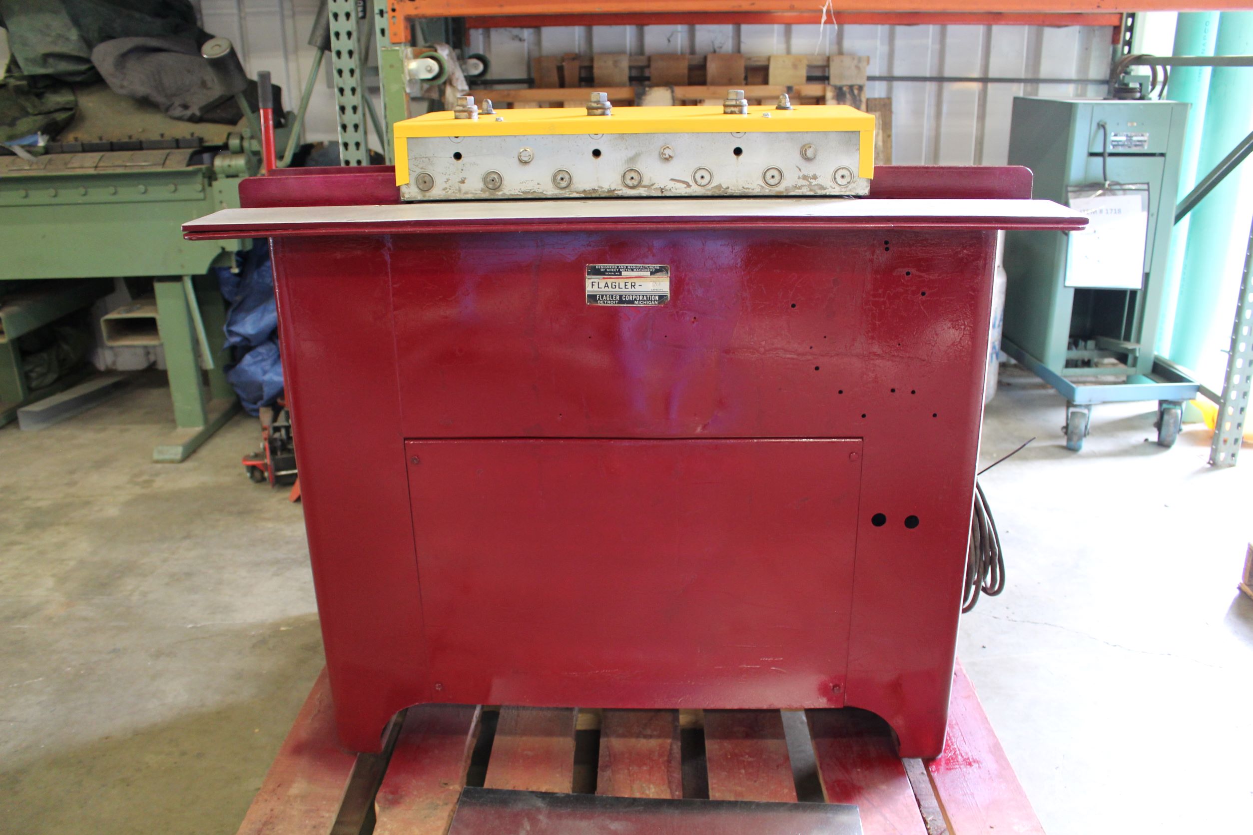 Description: Used Flagler Pittsburgh Rollformer with large and small female pittsburgh rolls